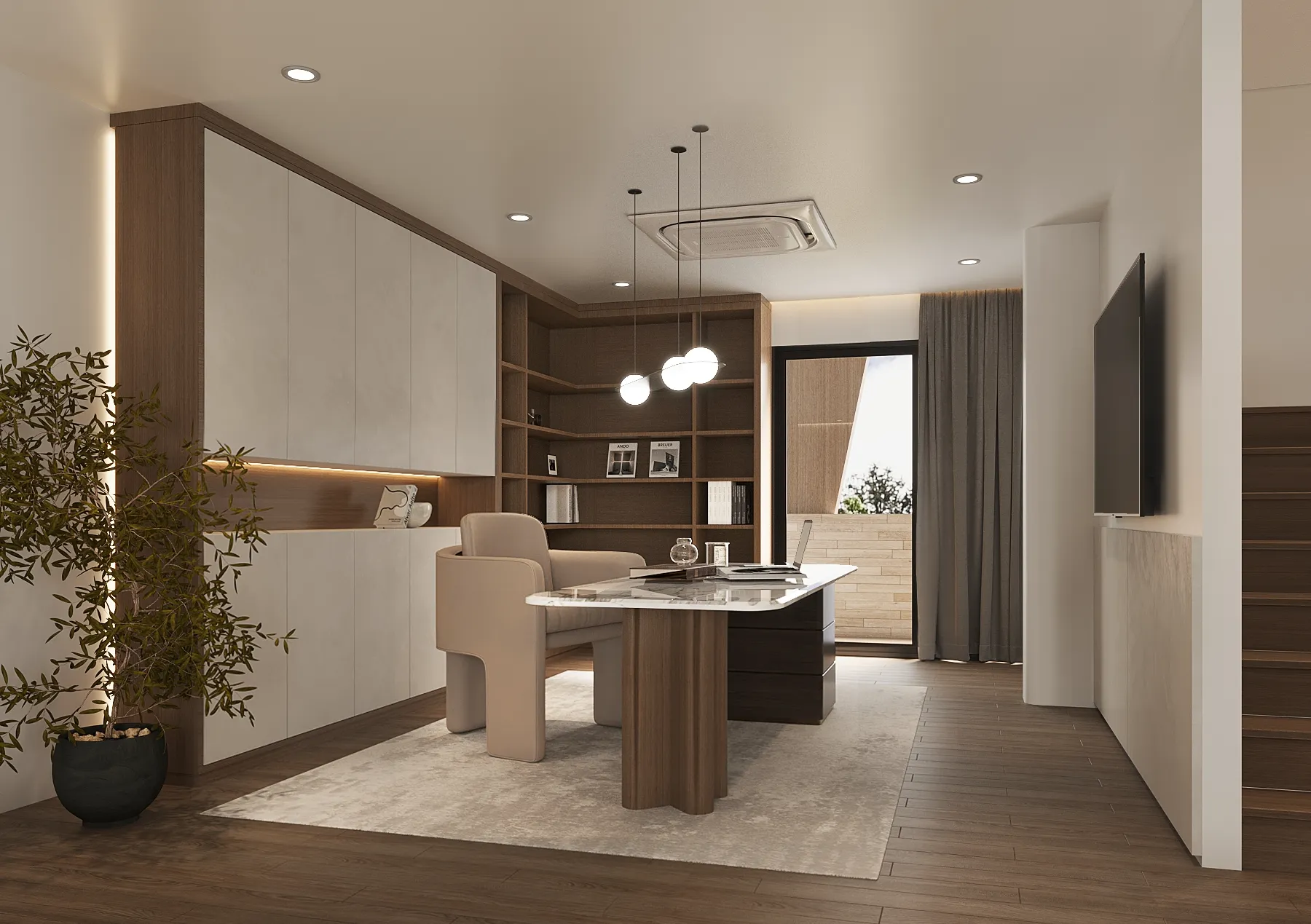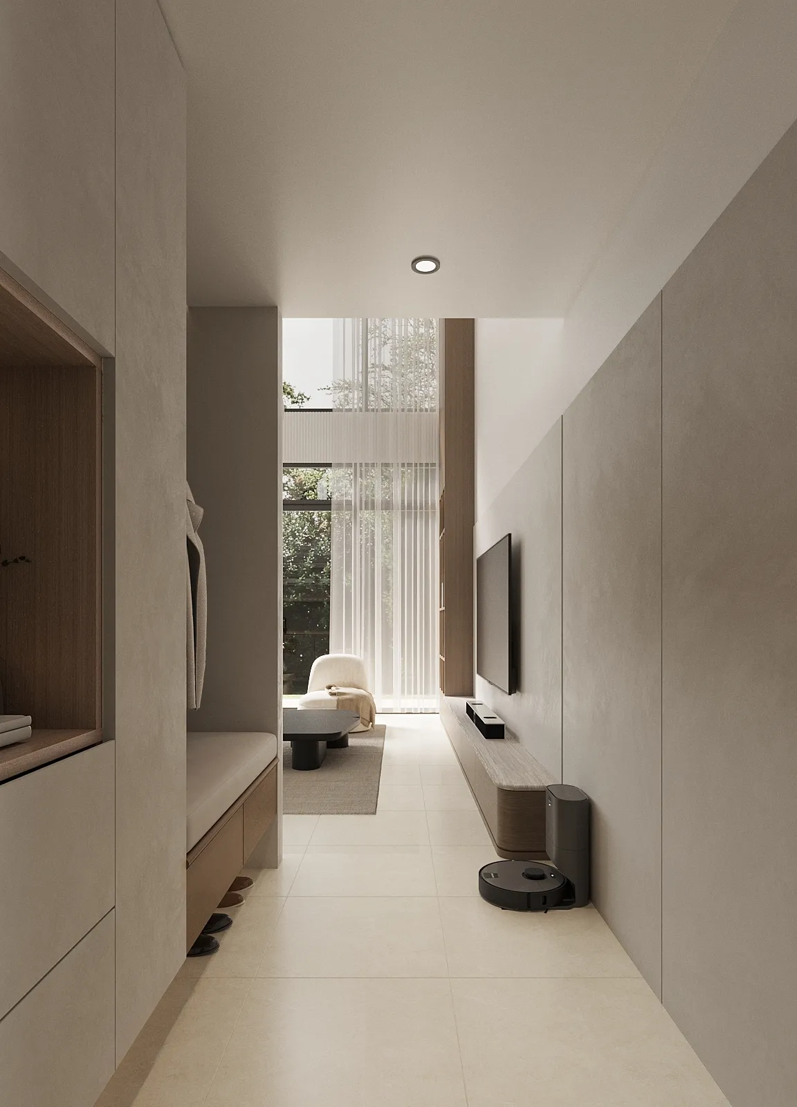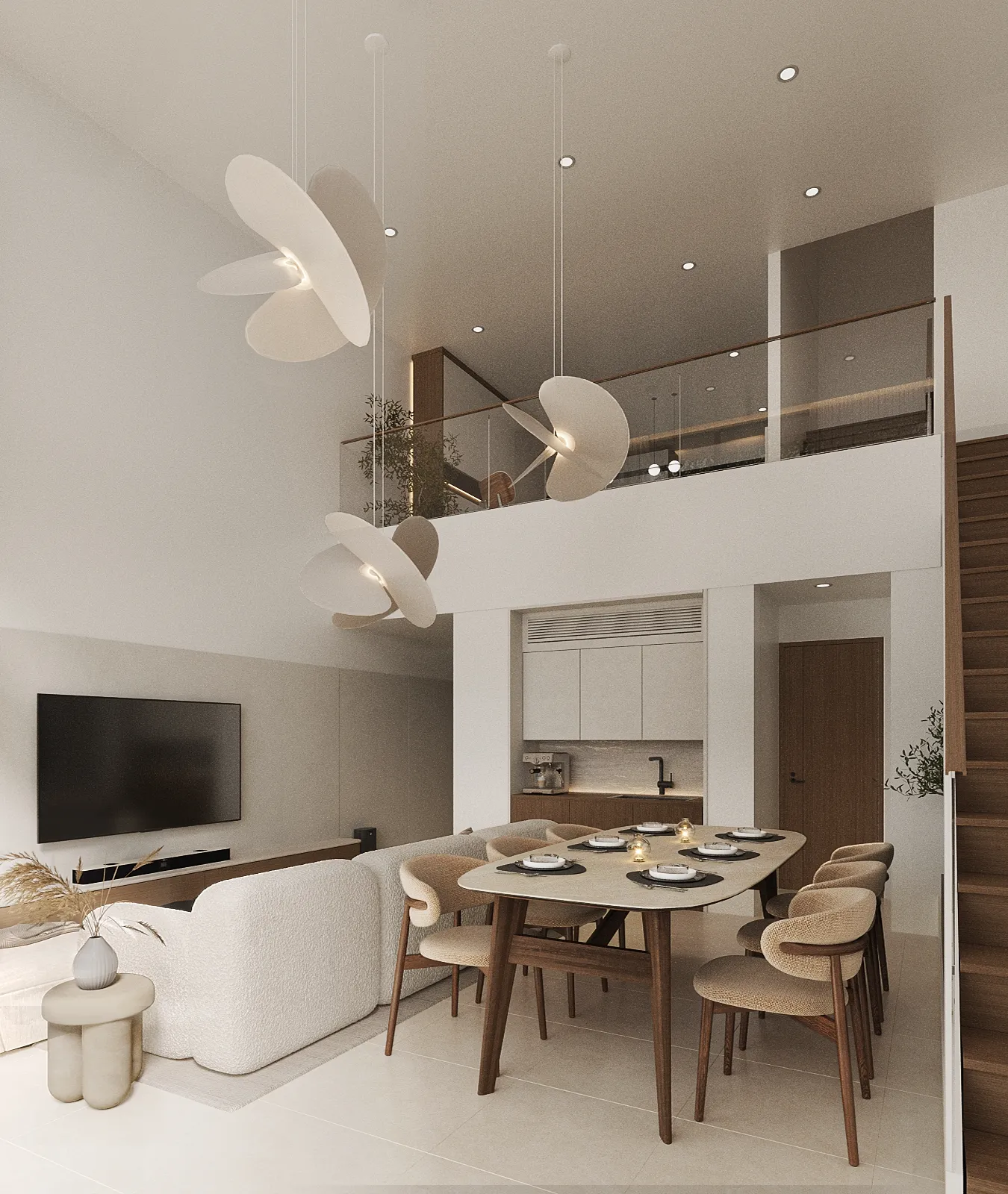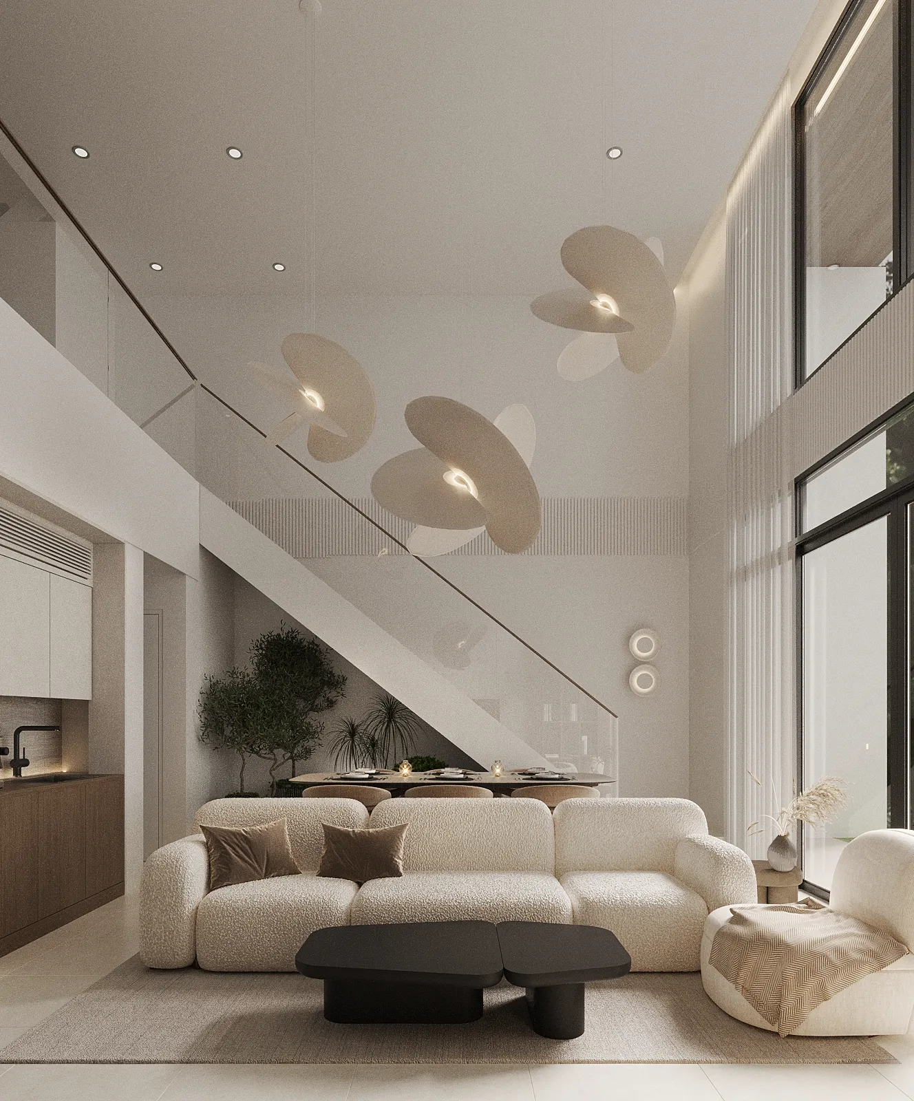 ภาพและบรรยากาศจำลองห้องนั่งเล่นเพดานสูง 5.7 ม.