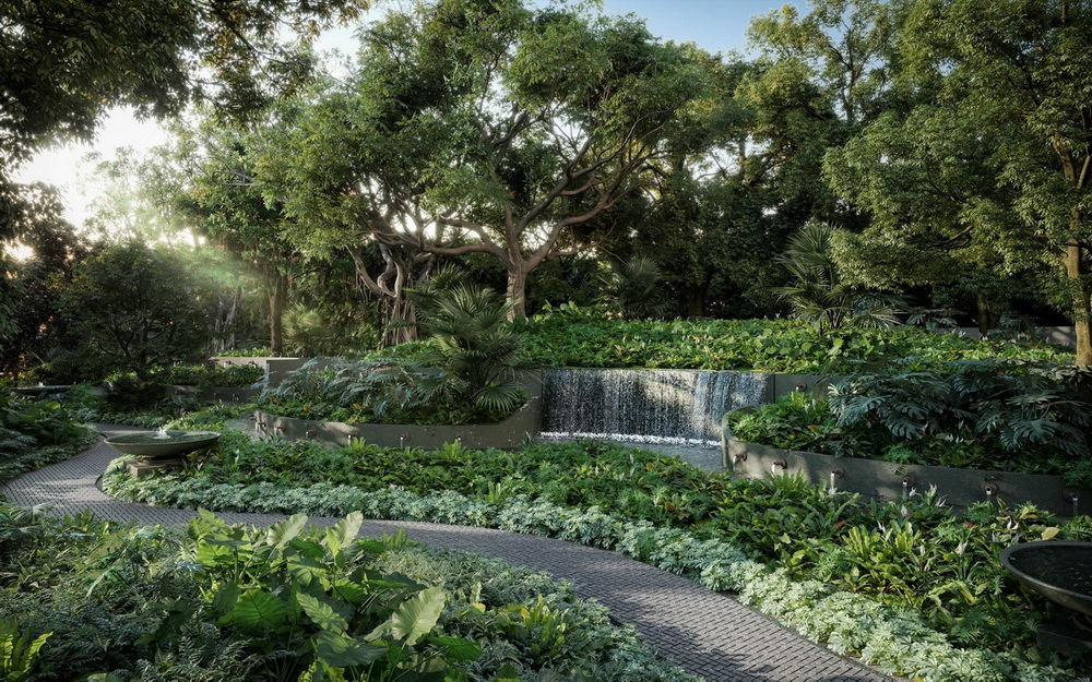 Urban Oasis สวนสีเขียวขนาดใหญ่มีพื้นที่รวมกว่า 1,600 ตารางเมตร ซึ่งได้แรงบันดาลใจในการออกแบบมาจาก “Tivoli Garden” รายล้อมด้วยต้นไม้และน้ำพุ รวมถึง Water Feature ต่าง ๆ ที่มาประสานจนเกิดเป็น Water Melody ช่วยสร้างความร่มรื่นและผ่อนคลาย หลีกหนีจากความวุ่นวายในเมือง เป็นโอเอซิสขนาดใหญ่ใจกลางทองหล่อ
