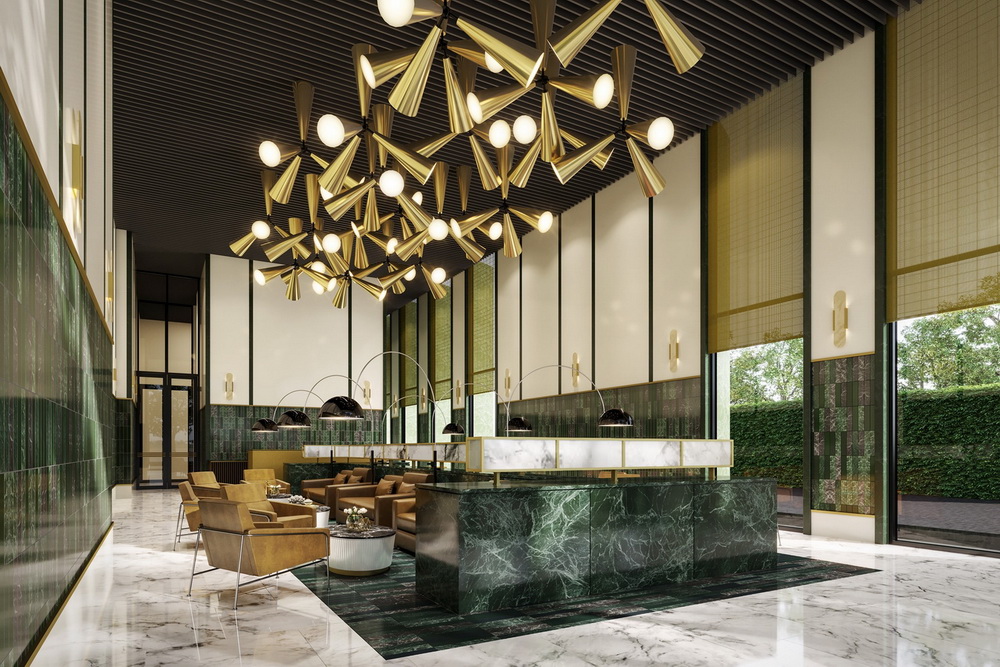 Art Deco Lobby ส่วนต้อนรับที่มีความเรียบหรู โดยนำเส้นสายและรูปทรงเลขาคณิตมาใช้ในการออกแบบ สะท้อนถึงการนำศิลปะช่วงปลายยุคของความเป็น Classic กับช่วงก่อนเข้ายุค Modern มาผสมผสานได้อย่างลงตัว