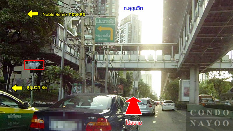 สุดสถานีก็จะเข้าซอยแสนสบาย สุขุมวิท 36 ก็ชิดซ้ายเตรียมเข้าโครงการได้เลย
