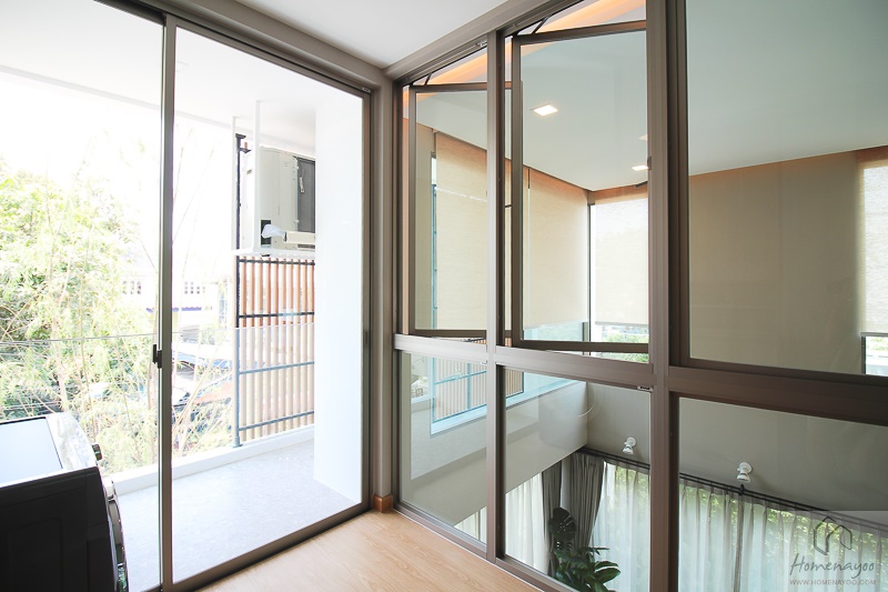 ภายในห้องมีกระจกบานใหญ่แบบ Bay Window ที่สามารถเห็นต้นไม้ที่ชั้น 2 ได้เต็มที่ รวมถึงยังได้กระจกบานเลื่อน สามารถระบายอากาศภายในห้องได้อีกด้วย