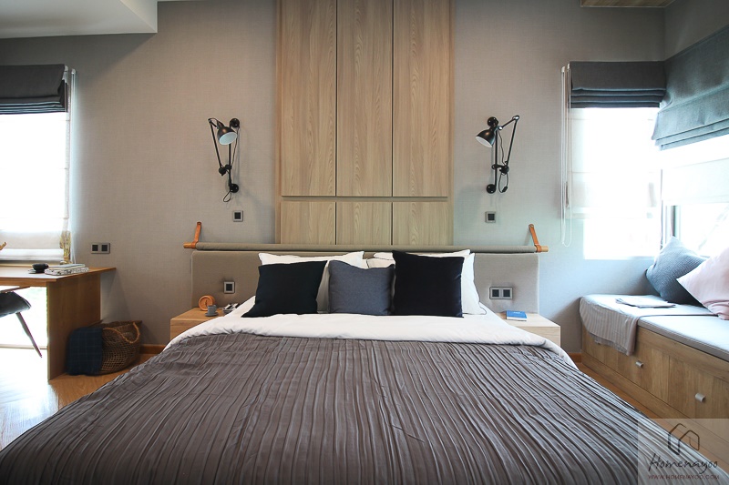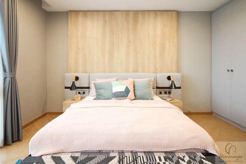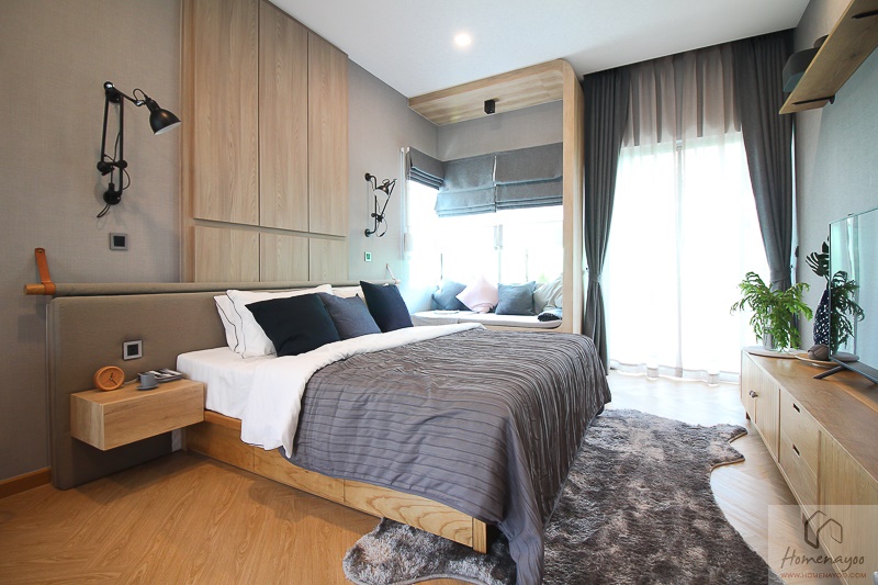 ด้านข้างเตียงมีพื้นที่สามารถทำเป็นตู้เสื้อผ้าขนาดใหญ่ได้ ซึ่งทางโครงการได้ทำชุด Built – in ที่สูงตั้งแต่พื้นถึงฝ้ามาให้ดูเป็นไอเดีย