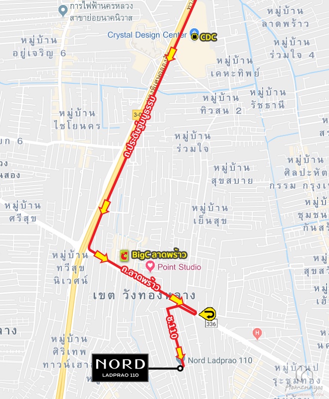 ถนนประดิษฐ์มนูธรรม > ถนนลาดพร้าว > ซอยลาดพร้าว 110 > ซอยสนธิวัฒนาแยก 3 > ซอยลาดพร้าว 110/2 > NORD ลาดพร้าว 110