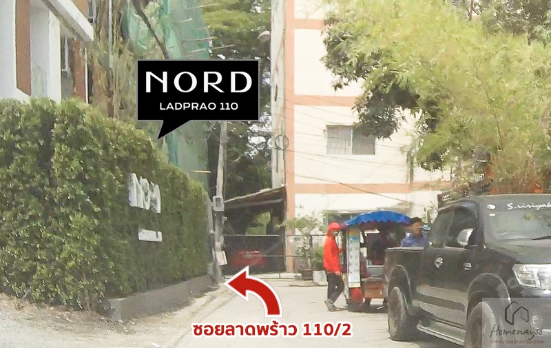 ทำเลที่ตั้ง โครงการ Nord ลาดพร้าว 110 ตั้งอยู่ในซอยลาดพร้าว 110 ใกล้ย่านทาวน์อินทาวน์ เป็นทำเลที่มาแรงของโครงการที่อยู่อาศัยทั้งแนวราบและแนวสูง เนื่องจากเป็นโซนที่มีการพัฒนาอย่างต่อเนื่อง จึงส่งผลให้ในย่านนี้รายล้อมด้วยสาธารณูปโภคต่างๆ อย่างครบครัน ทั้งห้างสรรพสินค้า, คอมมูนิตี้มอลล์, โรงพยาบาล, โรงเรียน และร้านค้ารายย่อยๆ พบว่าราคาที่ดินของย่านนี้ถูกปรับตัวสูงขึ้นตามความเจริญของพื้นที่ และในอีกไม่กี่ปีข้างหน้าคาดว่าราคาที่ดินจะก้าวกระโดดได้แน่เมื่อเส้นทางรถไฟฟ้าสายสีเหลืองเริ่มเป็นรูปเป็นร่าง แต่เนื่องจากทำเลของตัวโครงการนั้นตั้งอยู่ภายในซอย (ประมาณ 700 เมตรจากถนนลาดพร้าว) จึงค่อนข้างมีความเป็นส่วนตัวสูงเพราะล้อมรอบด้วยบ้านพักอาศัยดั้งเดิมของคนในละแวกนั้นค่ะ