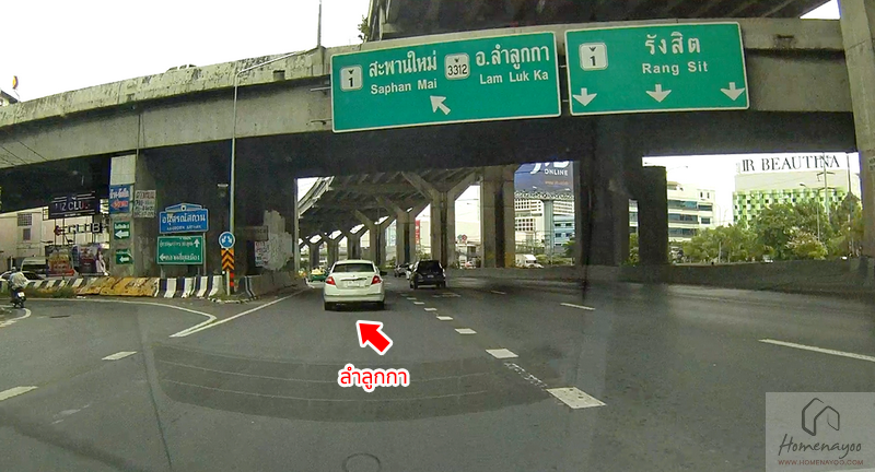 เลยจากสนามบินดอนเมืองมา ให้สังเกตป้ายทางเข้า อ.ลำลูกกา ชิดซ้าย