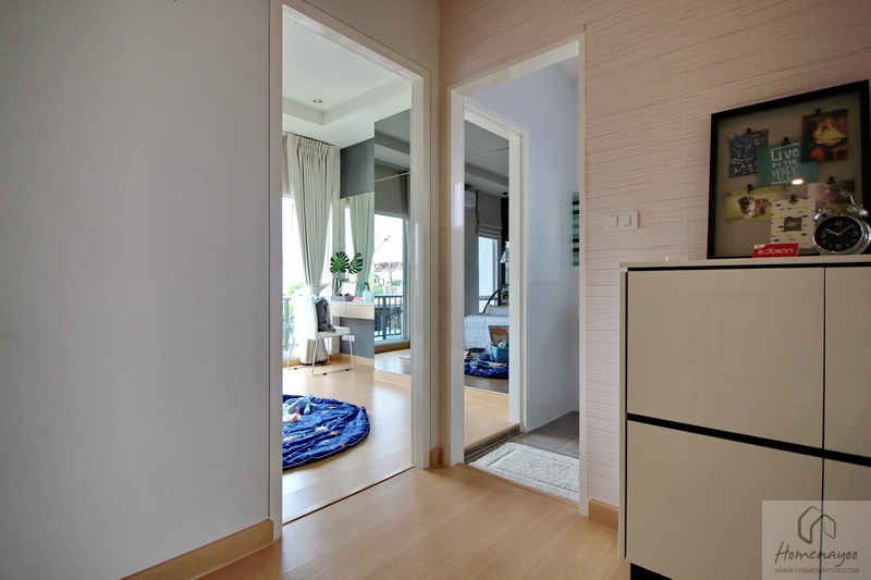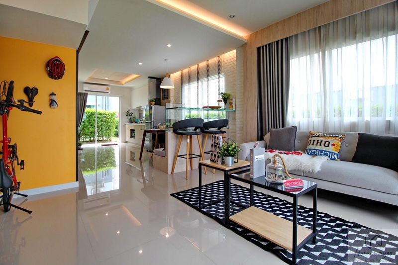 ฝั่งตรงข้ามใช้งานเป็นชั้นวางทีวี ที่ทางโครงการมีการตกแต่งเพื่อสื่อถึงไลฟ์สไตล์เจ้าของบ้านว่าชื่นชอบการปั่นจักรยานอย่างแน่นอน