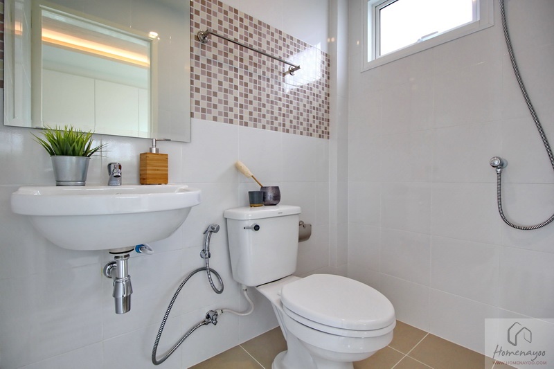 ติดตั้งฝักบัวสายอ่อน และมีหน้าต่างระบายอากาศเปิดปิดแบบบานกระทุ้ง