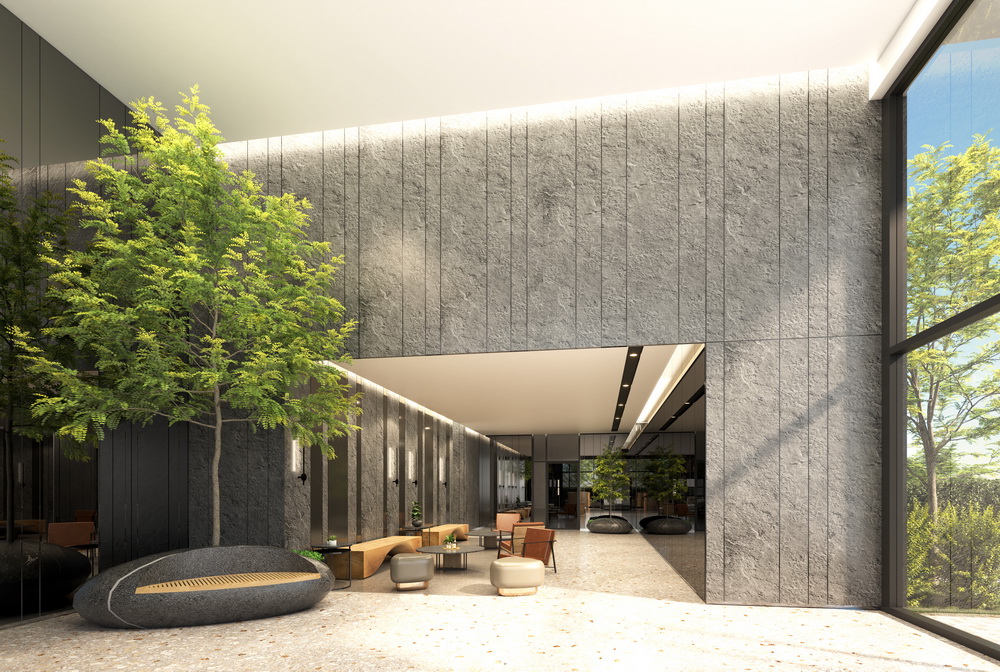 การออกแบบอาคารมาในสไตล์โมเดิร์นมินิมอล ใช้เส้นสายที่สะท้อนถึงคนยุคใหม่ ภายนอกใช้โทนสีขาว Smoky White ตัดเส้นสายสีเทา และ Aluminium Composite ลายไม้ ที่ Facade ชั้นจอดรถยนต์ 1-6 บรรยากาศรอบ ๆ โอบล้อมด้วยพื้นที่สีเขียวขนาดใหญ่ บนชั้นสูง ๆ และชั้น Rooftop จะสามารถ Takeview เมือง, แม่น้ำเจ้าพระยา ยาวไปจนสุดเมืองชลได้เลย