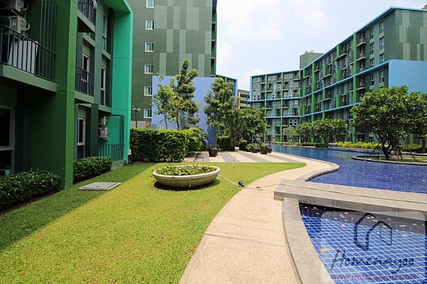 มีพื้นที่ส่วนกลางแยกเป็นสองฝั่งคือ มีสระน้ำอย่างละฝั่งซ้ายขวานะคะ สระว่ายน้ำปีกซ้ายหน้าอาคาร A และอาคาร B เป็นสระว่ายน้ำระบบเกลือกลางแจ้งขนาด 45 ตารางเมตร ทางเดินรอบสระเป็นผิวทรายล้าง มีสวนหย่อมปูสนามหญ้าปลูกไม้พุ่มและไม้ยืนต้นมาให้ร่มรื่น