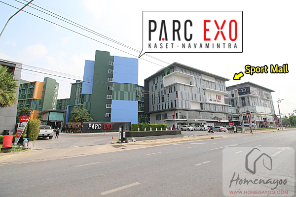 ตัวโครงการ PARC EXO เกษตร – นวมินทร์ ทางเข้าออกจะอยู่ฝั่งตรงข้ามกับโครงการนวธานี ซึ่งด้านในก็จะมีหมู่บ้านเดี่ยว 2 ชั้นและสนามกอล์ฟอยู่ แถวด้านหน้าโครงการจัดว่าเป็นโซนที่หาของกินง่าย เนื่องจากอยู่ใกล้ ร้านอาหาร Chocolate Ville ในระยะเดินถึงสบายๆ ด้านหน้าโครงการเองก็มี Sport Complex พื้นที่กว่า 6,000 ตารางเมตร ที่มีทั้ง 7-11, ร้านขายยา, ร้านอาหาร และศูนย์ฟิตเนสแบบ Full Option ที่ช่วยอำนวยความสะดวกให้คนในโครงการได้มาก