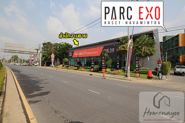 โครงการ PARC EXO เกษตร – นวมินทร์ จะอยู่ติดถนนเกษตร – นวมินทร์ตามชื่อนะคะ โดยจะอยู่ฝั่งซ้ายมือ ติดถนนขาออกมุ่งหน้าไปทางวงแหวนกาญจนาภิเษก โดยหน้าโครงการจะอยู่ระหว่างอาคารที่ติดป้ายครบรอบ 20 ปีณุศาศิริ Developer ของโครงการ และ Sport Mall