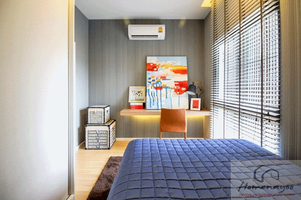 ห้องนี้จะตกแต่งเน้นโทนสีน้ำเงินเรียบเท่ออกแนวบอยๆหน่อย มีหน้าต่างช่องแสงที่มีฟินกันแดดให้