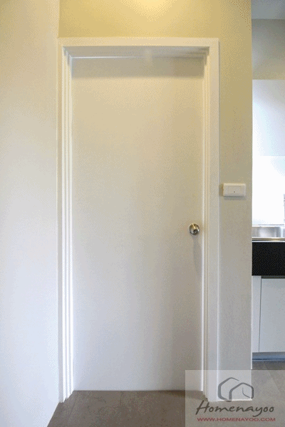 ภาพจากหัวเตียงไปยังปลายเตียง ประตูห้องน้ำจะอยู่ติดกับประตูทางเข้าบริเวณปลายเตียง เป็นห้องน้ำส่วนตัวของห้องนอนนี้