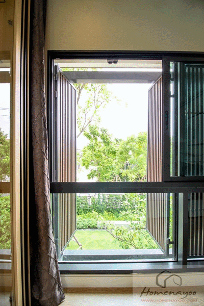 จุดเด่นของบ้านนี้คือหน้าต่างที่มีฟินกันแดดสามารถเปิด-ปิดได้