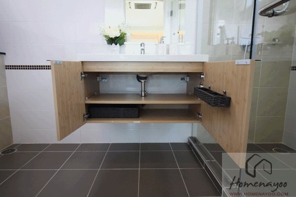 ภายในเคาน์เตอร์สามารถเก็บของใช้ภายในห้องน้ำได้นิดหน่อย