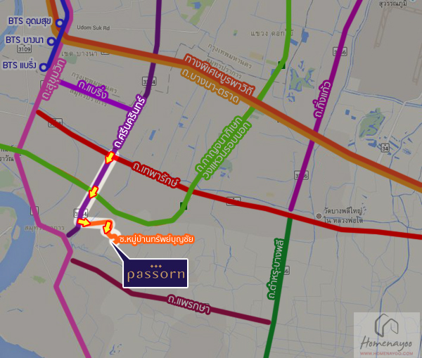 ทำเลที่ตั้งโครงการ – โครงการ ภัสสร ไพรด์ ศรีนครินทร์-เทพารักษ์ ตั้งยู่ในพื้นที่ของพฤกษาถนนหน้าโครงการเป็นถนนส่วนบุคคลซึ่งจะเชื่อมกับซอยหมุ่บ้านทรัพย์เจริญและถนนทรัพย์พัฒนา ซึ่งเป็นซอยที่เชื่อมต่อกับถนนศรีนครินทร์ ,ถนนแพรกษา และถนนเทพารักษ์ เดินทางได้หลากหลายเส้นทาง อีกทั้งยังไม่ไกลจากจุดขึ้น-ลงทางด่วนและวงแหวนรอบนอกกาญจนา ทำให้เดินทางเข้าตัวเมืองได้ง่ายค่ะ