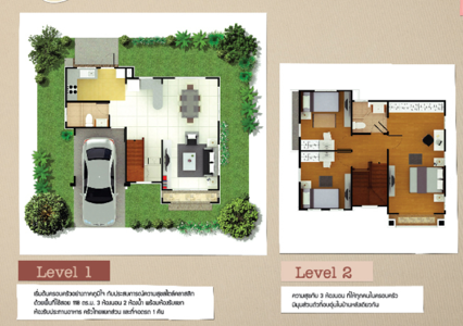 1st Floor / 2nd Floor : พื้นที่ใช้สอย 129 ตร.ม. / 3 ห้องนอน / 2 ห้องน้ำ / 2 ที่จอดรถ