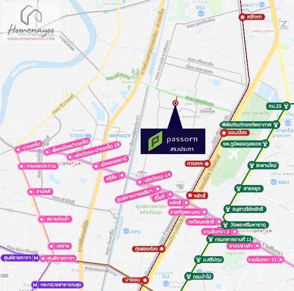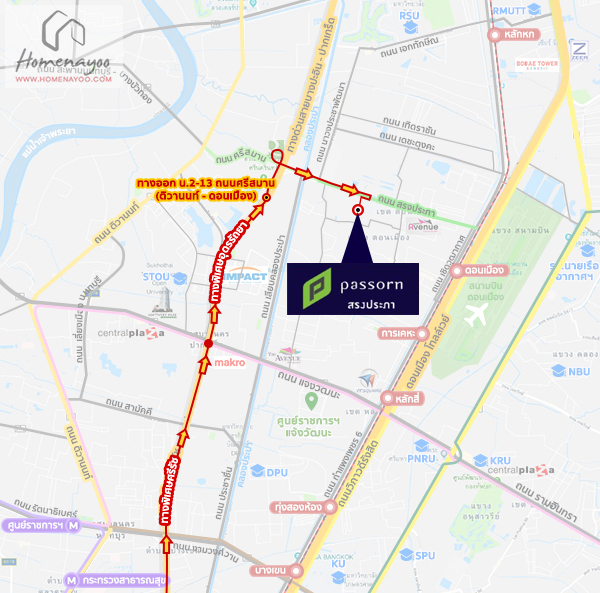 ♦ การเดินทางโดยรถไฟฟ้า : ในอนาคตมีโครงการรถไฟฟ้าสายสีแดง สถานีที่ใกล้ที่สุดคือสถานีดอนเมือง (หน้าวัดดอนเมือง) ห่างจากโครงการ ประมาณ 4.4 กม. สามารถนั่งมอเตอร์ไซค์รับจ้างไปต่อรถไฟฟ้าได้ ใช้เวลาในการเดินทางไปสถานีรถไฟฟ้า ประมาณ 5-10 นาที โดยแผนการดำเนินการโครงการรถไฟฟ้าสีแดงอยู่ระหว่างก่อสร้างค่ะ โดยคาดว่าจะแล้วเสร็จพร้อมเปิดให้บริการไม่เกินปี 2563