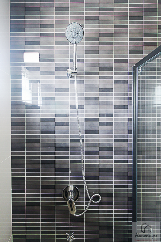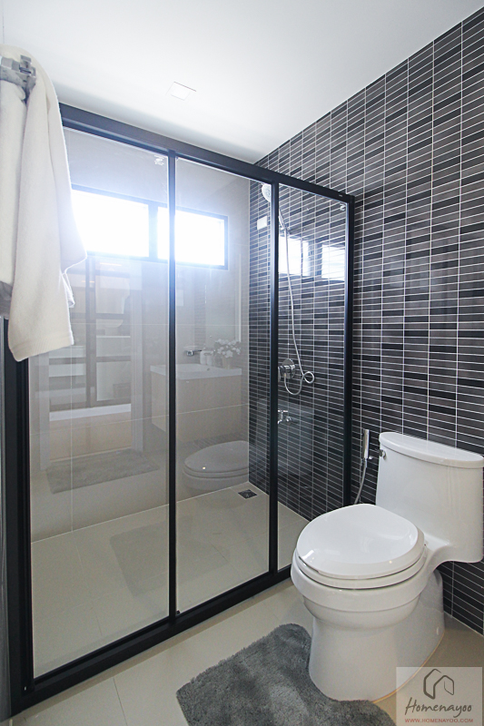ด้านในสุดคือส่วนอาบน้ำ ห้องนี้แยกโซนแห้งและเปียกชัดเจนด้วยฉากกั้นอาบน้ำ ทำให้ดูแลรักษาความสะอาดได้ง่าย