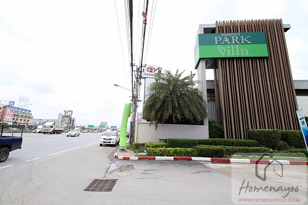 ตรงเข้ามาตามทางจะเห็นซุ้มโครงการ The Villa อยู่ทางฝั่งขวามือ