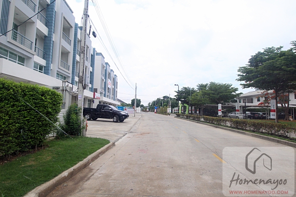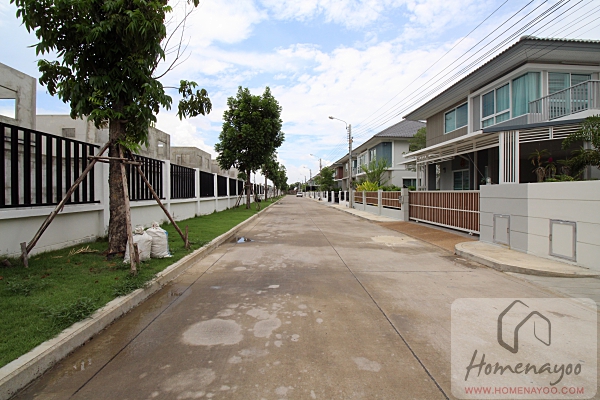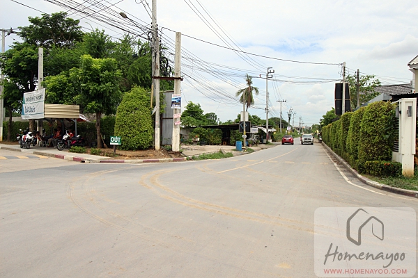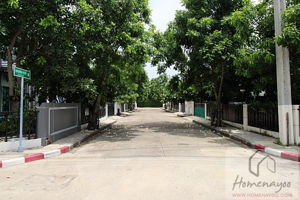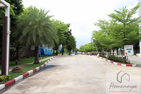 ถนนภาระจำยอมทางเข้าโครงการเป็นถนนสี่เลน มีเกาะตรงกลางแบ่งฝั่งเข้าออกมาให้และปลูกต้นไม้มาร่มรื่น และทำทางเท้ามาให้ 2 ฝั่งข้างทาง