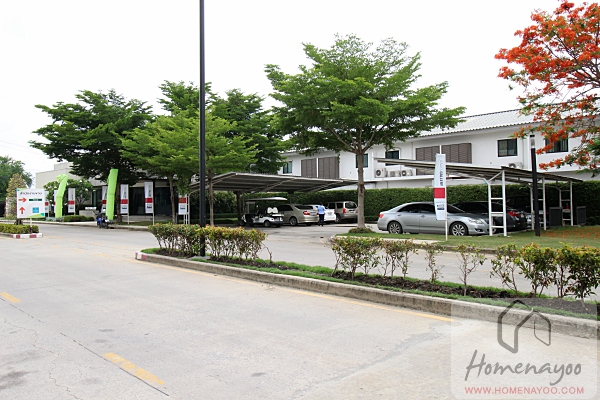 จากด้านหน้าซุ้มโครงการมองไปทางฝั่งซ้ายมือจะเห็นป้ายโชว์รูมของ Toyota อยู่