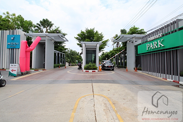 ส่วนนี้จะไม่มีไม้กระดกนะคะ สามารถขับผ่านเข้าไปได้เลย เพราะแต่ละโครงการจะมีซุ้มทางเข้าของโครงการตัวเองอยู่ภายในอีกทีอยู่แล้ว