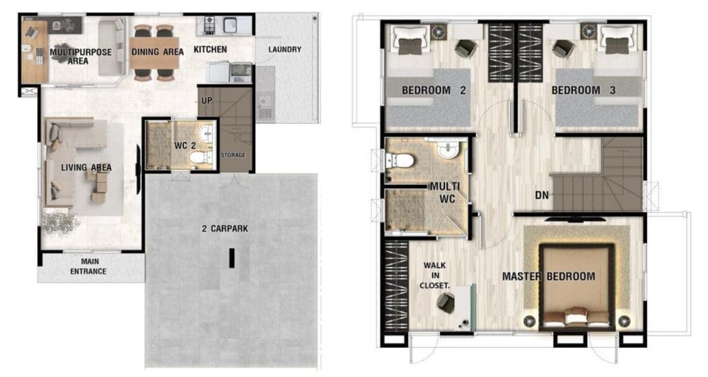 แปลนบ้านชั้น 1 | แปลนบ้านชั้น 2