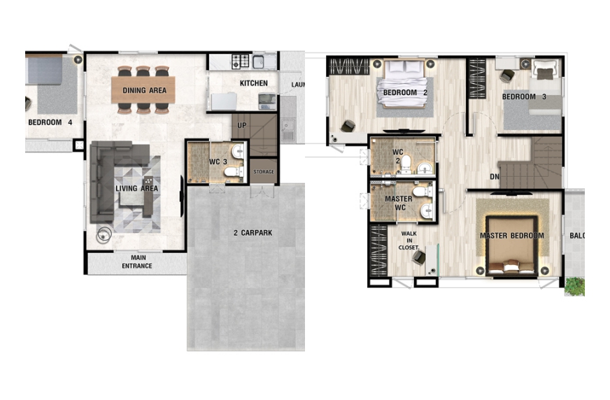 | จำนวนห้อง | 3-4 ห้องนอน 2-3 ห้องน้ำ |