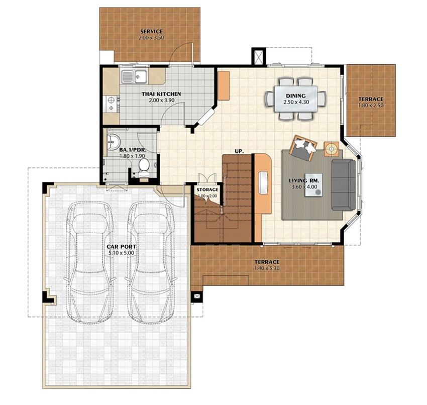 | จำนวนห้อง | 3 ห้องนอน / 2 – 3 ห้องน้ำ |