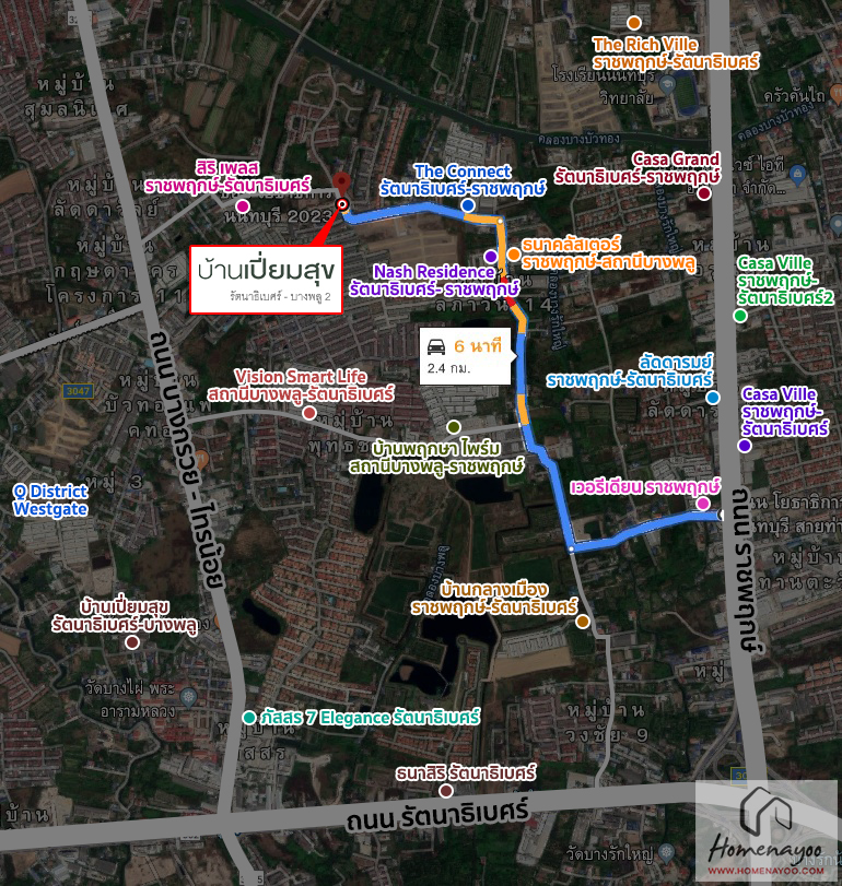 ผ่าน Nash Residence รัตนาธิเบศร์- ราชพฤกษ์ และธนาคลัสเตอร์ ราชพฤกษ์-สถานีบางพลู