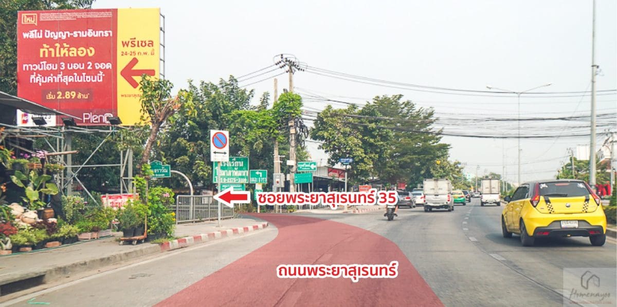 จากปากซอยพระยาสุเรนทร์ 35 เข้าไปตามซอยอีกประมาณ 1 กม.* จะเจอพื้นที่โครงการทางซ้ายมือ