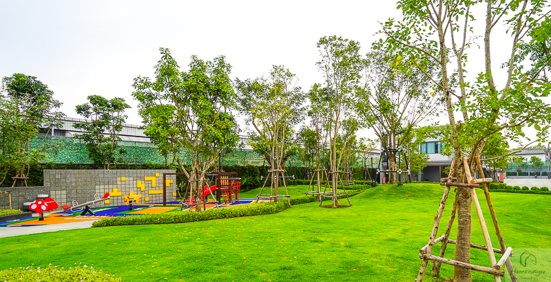 พื้นที่สวนส่วนกลางขนาดใหญ่ ตกแต่งมาได้ร่มรื่น ภายในสวนมีทั้งต้นไม้ใหญ่ ไม้พุ่ม และไม้ดอก มีสนามหญ้าโล่ง ๆ ไว้ทำกิจกรรมต่าง ๆ มีทางเดินเชื่อมต่อรอบสวน พร้อมพื้นที่นั่งพักผ่อน และสนามเด็กเล่น พร้อมเครื่องเล่นที่ช่วยเสริมสร้างพัฒนาการ