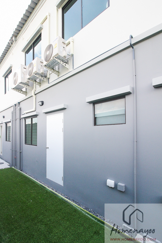 ออกมาที่ลานซักล้างหลังบ้าน จะมีติดตั้งไฟติดผนัง 1 ดวง สำหรับยูนิตจริงจะมีรั้วกั้นมาให้ค่ะ