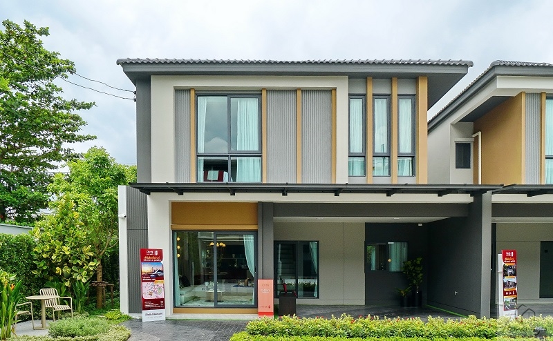 สำหรับบ้านตัวอย่างเพิ่มพื้นที่สีเขียวให้กับตัวบ้านด้วยพุ่มไม้ดอกไม้และกระถางต้นไม้สวยงาม