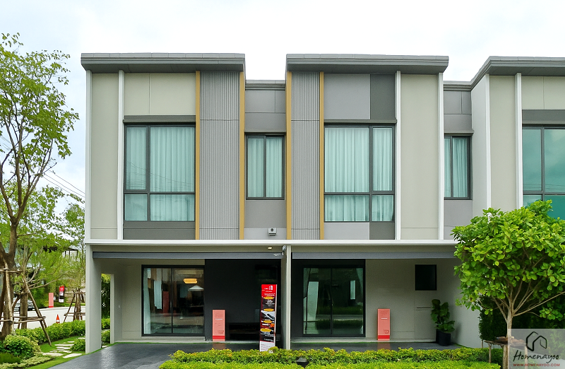 ⇒ การออกแบบโครงการ, แบบบ้าน และวัสดุ : เป็นโครงการที่มีทั้งทาวน์โฮมและบ้านแฝด 2 ชั้น จำนวน 135 หลัง บนที่ดินขนาดประมาณ 14 ไร่ มีแบบบ้านให้เลือกทั้งหมด 3 แบบ ที่ดินบ้านเริ่มต้น 18.01-50 ตร.ว. พื้นที่ใช้สอย 108-154 ตร.ม. ภายในกว้างขวางใช้งานได้จริงทุกตารางเมตร ปรับเปลี่ยนรูปแบบได้อย่างยืดหยุ่นทุกช่วงวัย