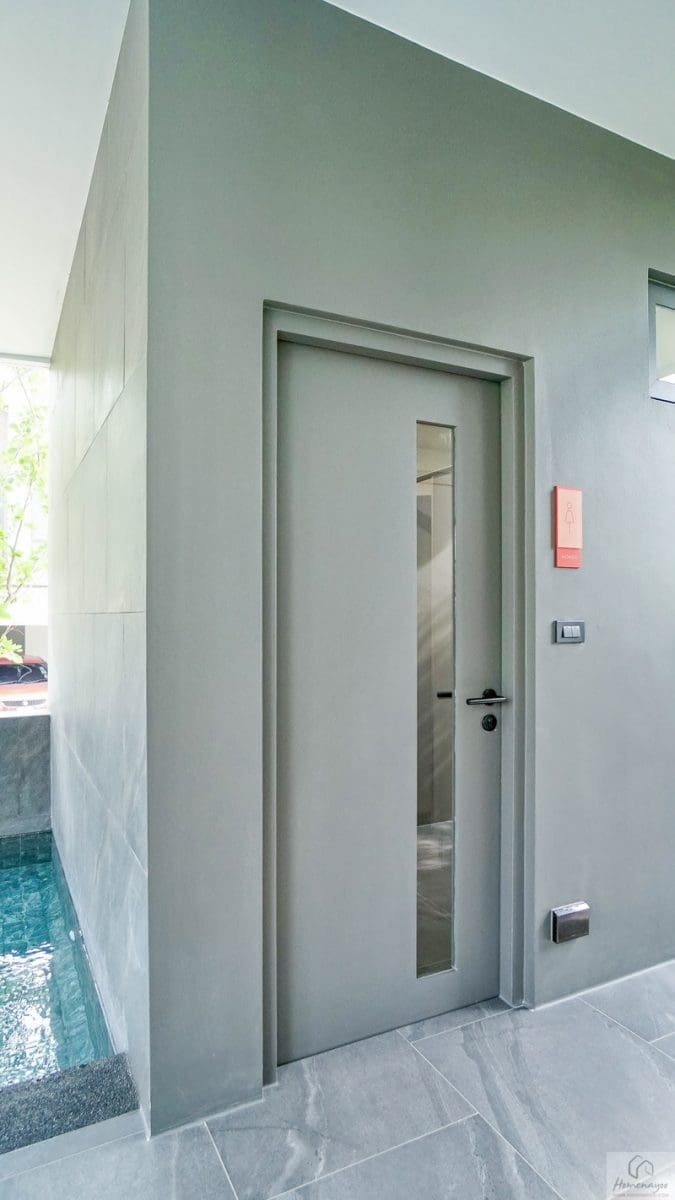 ข้างสระเป็นพื้นที่พักผ่อนรองรับสัญญาณ Wi-Fi และจุดชำระล้างตัวมาให้ มีห้องน้ำส่วนกลางแยกชาย-หญิงและผู้ใช้ Wheelchair กับที่ตั้งของนิติบุคคล ส่วนชั้นบนจะเป็น Fitness วางเครื่องออกกำลังกายครบครันทันสมัย ที่เปิดให้บริการตลอด 24 ชั่วโมง และห้องพักผ่อน Co-Living Space ให้ลูกบ้านได้มาเปลี่ยนบรรยากาศกัน