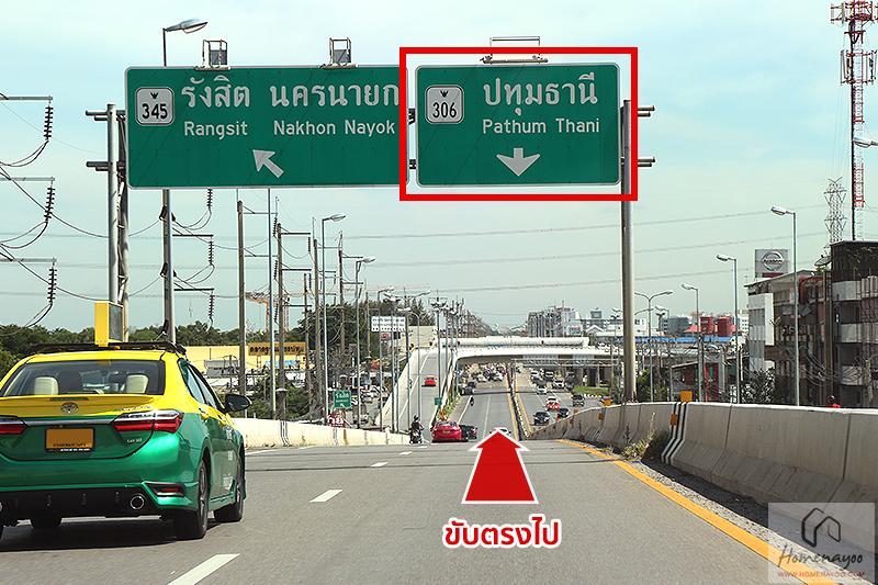 ขับตรงไปตามทางเรื่อย ๆ ขึ้นสะพานข้ามแยกปู่โพธิ์ ทางไปรังสิต-นครนายก ส่วนเราชิดขวาตามป้ายไปปทุมธานีค่ะ