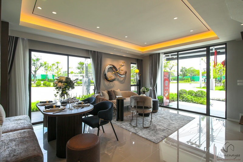 โครงการจัดแปลนภายในแบบ Open Plan ได้พื้นที่กว้างเต็ม ๆ ทั้งชั้น ทำให้ลูกค้าได้ใช้พื้นที่ในการจัดสรรฟังก์ชันการใช้งานได้เต็มทุกตารางเมตร ซึ่งจะช่วยให้ทุกกิจกรรมของคนในครอบครัวได้อยู่ร่วมกันอย่างใกล้ชิด และเชื่อมต่อกับห้องครัวได้สะดวก โดยบ้านตัวอย่างจัดเฟอร์นิเจอร์มาให้เห็นความลงตัวในแง่ของการใช้งาน และ ความสวยงามเพื่อเป็นไอเดีย เดี๋ยวเราไปดูรายละเอียดในแต่ละส่วนกันค่ะ