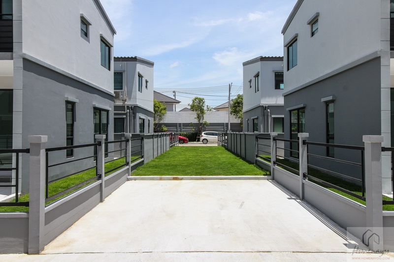 ถนนซอยมีความกว้าง ประมาณ 9 เมตร แต่ละซอยมีจำนวนบ้านไม่มาก สุดซอยจะมีการจัดสวนแนวรั้ว และ ปูสนามหญ้ามาให้ ทำให้ได้บรรยากาศที่ดูอบอุ่น ร่มรื่น ได้ความเป็นส่วนตัวเหมือนอยู่บ้านเดี่ยวเลยค่ะ