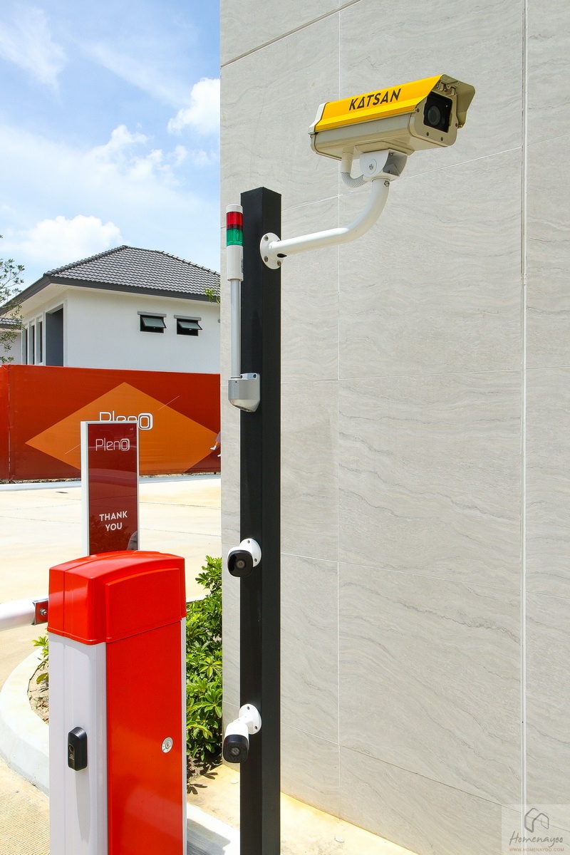 ระบบรักษาความปลอดภัยมีรปภ. ตลอด 24 ชม. รั้วรอบโครงการสูง 2.5 ม. ทางเข้าโครงการเป็นแบบไม้กระดกอัตโนมัติ ควบคุมการเข้าออกด้วยระบบ Katsan มีประตูเลื่อนอัตโนมัติ เพื่อความปลอดภัยสูงสุด และมี CCTV ติดตั้งตรงประตูทางเข้า-ออก ฝั่งละ 3 ตัว พร้อมเจ้าหน้าที่ดูแลรักษาความปลอดภัยประจำโครงการตลอด 24 ชม. ค่ะ