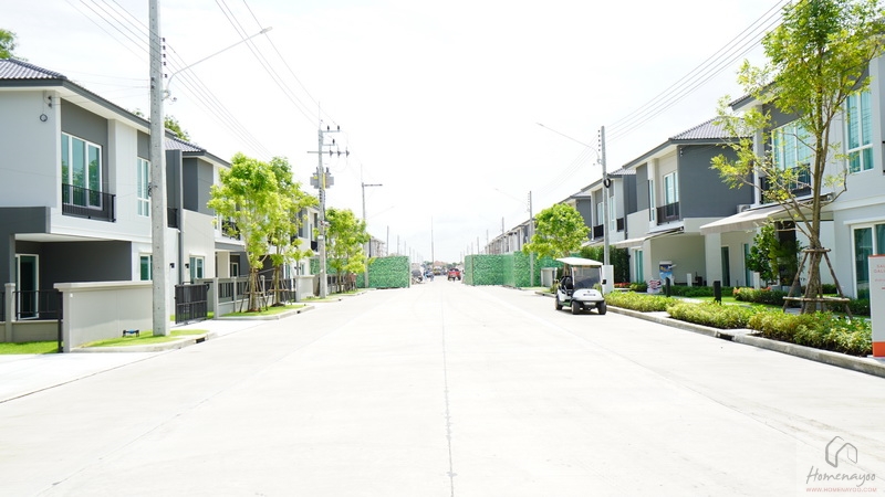 ⇒ การออกแบบบ้านและวัสดุ : ส่วน Product ของบ้าน จะเป็นทาวน์โฮมและบ้านแฝด 2 ชั้น บนที่ดินขนาดใหญ่กว่า 45 ไร่ มีบ้านพักอาศัยรวม 449 หลัง โดยทาวน์โฮมของโครงการนี้ ก่อสร้างโดยใช้ระบบ Tunnel Form หรือโครงสร้างการหล่อคอนกรีตแบบเทในที่ ทำให้แต่ละส่วนของบ้านไร้รอยต่อและแข็งแรง ส่วนบ้านแฝดก่อสร้างโดยใช้โครงสร้างก่ออิฐมวลเบา ให้ความแข็งแรงเช่นกัน แถมยังกันความร้อนและดูดซับเสียงได้ดีอีกด้วย