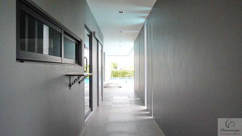 ภายในมีพื้นที่ใช้งานกว้างกำลังดีค่ะ สามารถ Built-in เคาน์เตอร์ครัวเข้ามุมขนาดใหญ่ ติด Hod, Hood, Sink ได้แบบ Full Function และยังมีพื้นที่เหลือให้วางตู้เย็น 6-12 คิวได้ นอกจากนั้นยังมีหน้าต่างกระจกบานเลื่อน ไว้เปิดระบายกลิ่น ระบายอากาศให้ออกไปทางหลังบ้านได้ด้วยค่ะ