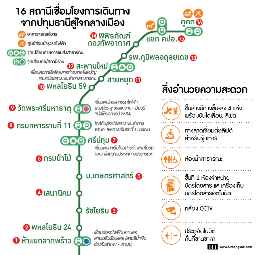ปัจจุบันเปิดใช้งานมาสักระยะแล้วนะคะ ซึ่งจะทำให้เราเดินทางยิงยาว เชื่อมปทุม-กทม.-ปากน้ำ ได้เลย จากรถไฟฟ้าสายสีเขียวเหนือ สถานีคูคต นั่งไปห้าแยกลาดพร้าว เพื่อเปลี่ยนเส้นทางการเดินรถไปเป็นรถไฟฟ้าใต้ดินได้ง่าย และตอนนี้ก็จะมี Sky Walk ให้เดินเชื่อม MRT พหลโยธิน กับ BTS ห้าแยกลาดพร้าว รวมถึงเชื่อมต่อกับ Central ลาดพร้าว และ Union Mall ได้แล้วด้วยค่ะ