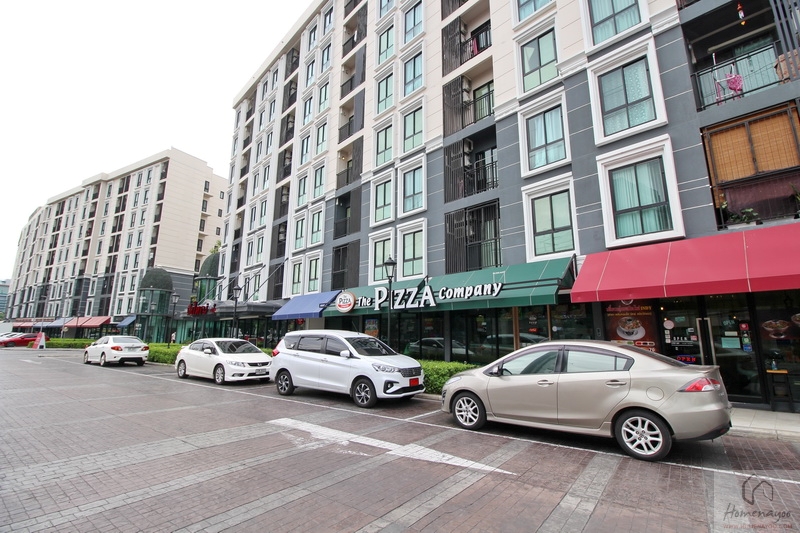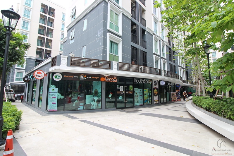 จากทางเข้า-ออกโครงการ มองตรงกลับออกมา จะเป็นโซนของ Retail ที่มีทั้งหมดรวม ๆ แล้วกว่า 18 ยูนิต ด้านหน้าจะเป็นที่จอดรถสำหรับลูกค้าที่แวะมาซื้อของ หรือ ทานอาหารที่ร้าน แต่จะไม่อนุญาตให้จอดรถยนต์ค้างคืนนะคะ