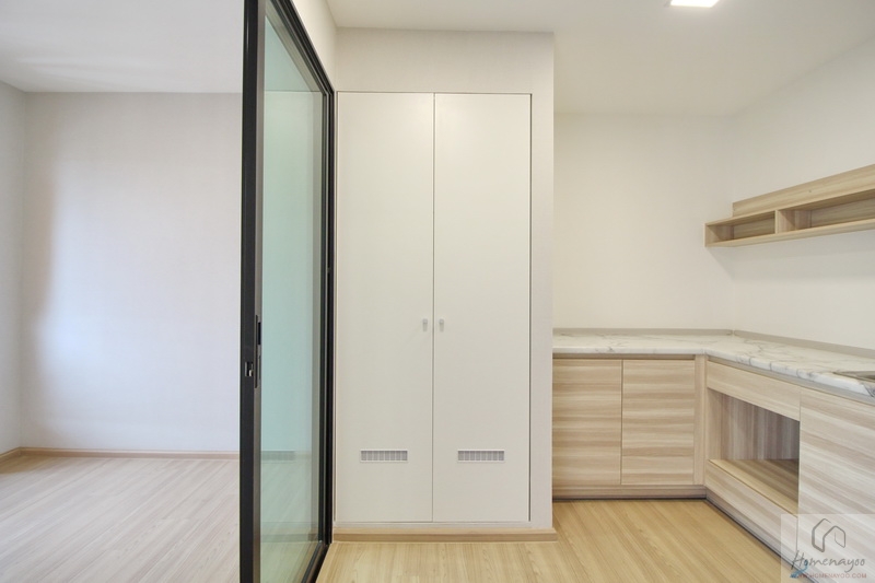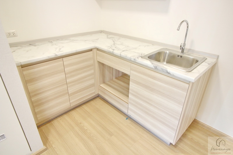 เฟอร์นิเจอร์ที่ได้มากับห้องจะได้มาตามนี้เลย คือ ตู้อเนกประสงค์ Built-in ความสูงจรดฝ้าเพดานแบบบานเปิด พร้อมช่องระบายอากาศ และชุดครัว L-Shape เข้ามุมตามนี้ค่ะ