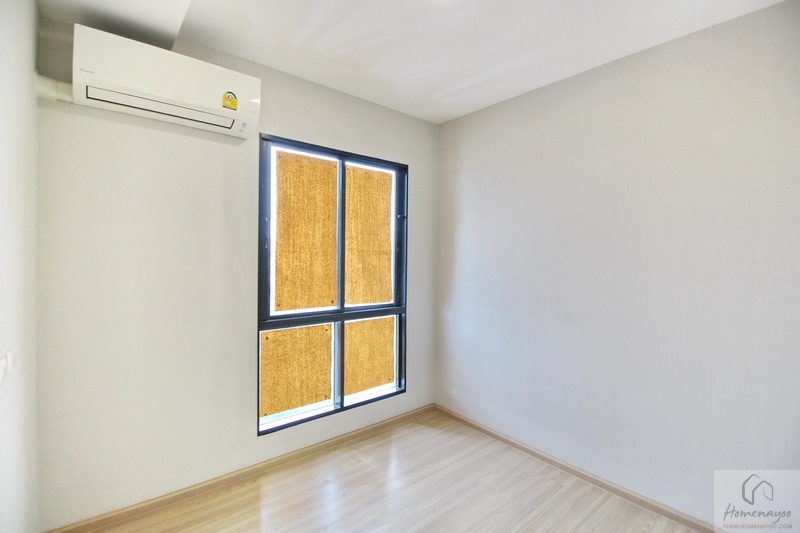 ห้องนี้จะรองรับเตียง 3.5 ฟุต และตู้เสื้อผ้าได้ค่ะ ส่วนใครที่อยู่คนเดียว หรือ อยู่แบบคู่รัก สามารถปรับฟังก์ชันให้เป็นห้องแต่งตัว หรือ ห้องทำงานไว้ WFH อยู่ที่บ้านก็ได้ โดยในห้องจะได้หน้าต่างกระจกบานผสม และแอร์ Wall Type มาครบแล้วค่ะ