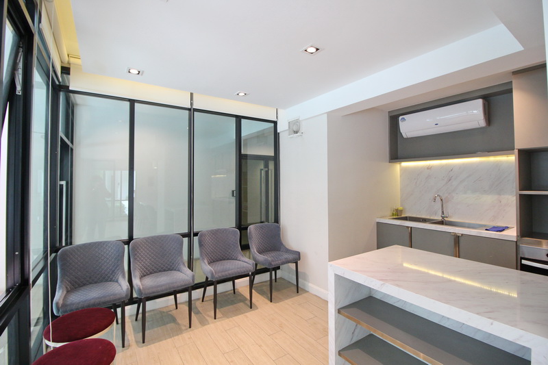 ภายในจัดฟังก์ชันมาให้ครบ ทั้ง Island, โต๊ะทานข้าว, ซิงค์ล้างจาน, Hob-Hood และตู้เย็น สามารถใช้เป็นพื้นที่ทำขนม ทำอาหาร ถ่ายคลิปลง Social หรือ จะใช้เป็นห้องทานอาหารที่สั่ง Delivery มาก็ยังได้