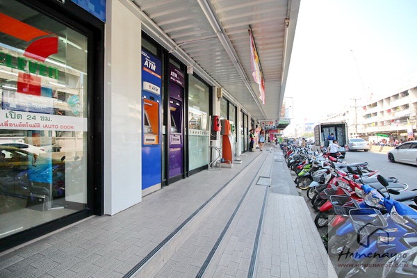 ตรงข้ามกับวินมอเตอร์ไซค์ และคิวรถสองแถว มี 7-11 ขนาดใหญ่ ภายในมี Book Smile และร้านขายยาด้วยนะ ด้านหน้ายังมีตู้เติมเงิน, ตู้ ATM ของธนาคารกรุงเทพ และธนาคารไทยพาณิชย์ให้บริการครบ เงินหมดเดินมากดกันได้ชิว ๆ อะ