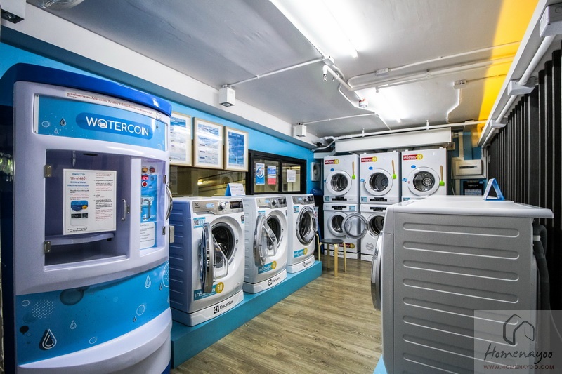 ขวามือแขวน CDU 2 ตัว ด้านล่างเป็นพื้นที่สำหรับวางเครื่องซักผ้า ที่วางได้ทั้งฝาหน้าและฝาบนค่ะ